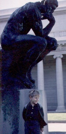 Kris at about 6 years old with Rodin's "The Thinker" outside of the San Francisco Palace of the Legion of Honor...